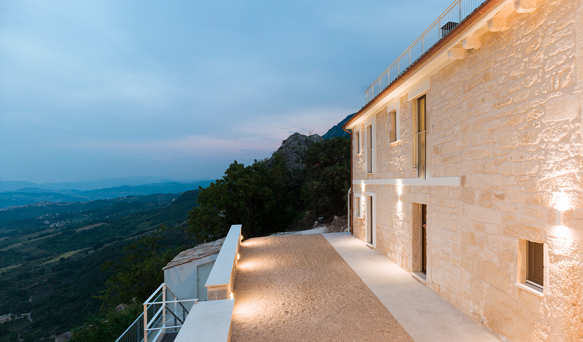 La caratteristica di questa casa, come molte altre del nostro paese, e’ quella di essere stata scavata nella roccia e completata con mura di pietra della Maiella. La ristrutturazione, iniziata nel 2015, ha voluto conservare intatta questa particolarita’, riportando la pietra alla sua bellezza originaria, completata con infissi, scale e pavimenti in legno. E’ stato inoltre installato un impianto fotovoltaico. Si sviluppa su un piano terreno, con giardino, un primo piano ed un terrazzo.